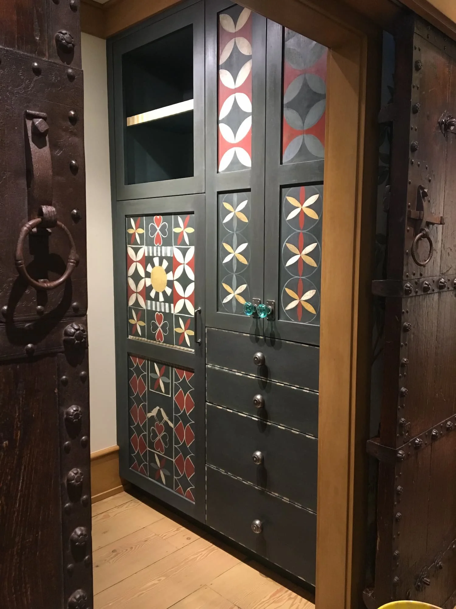 Custom decorative painting for furniture and built-ins, enhancing form and material through layered finishes and precise detailing. Each piece is developed through sampling and executed to integrate seamlessly with the surrounding interior palette and design intent.
